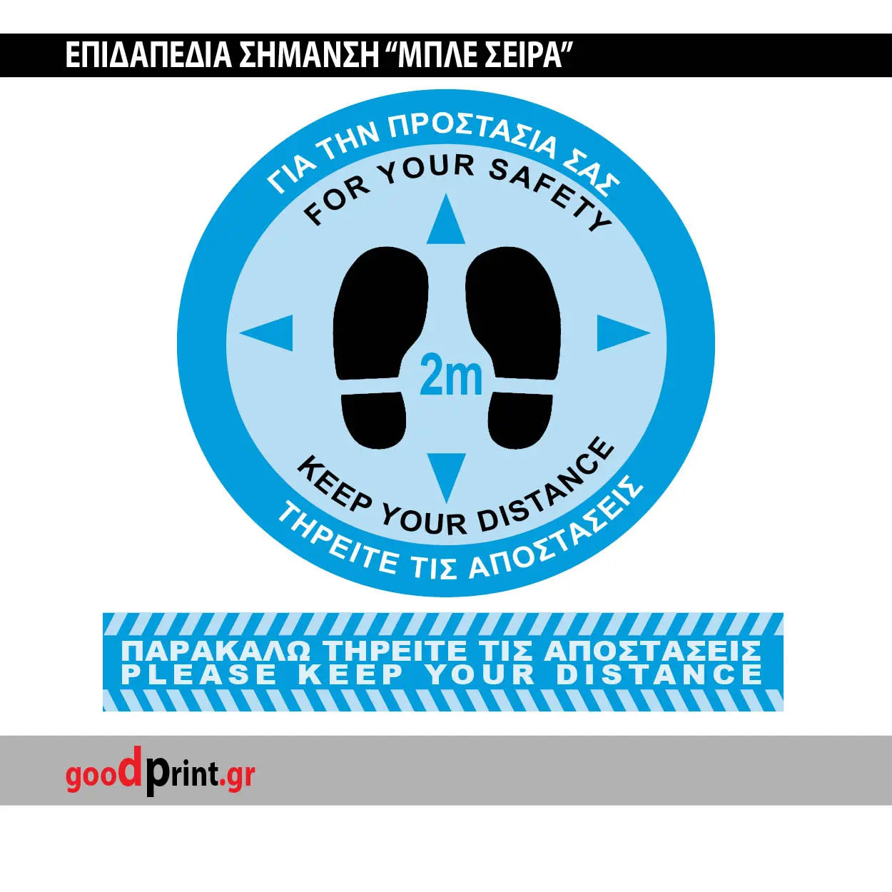αυτοκόλλητο με πλαστικοποίηση floor graphics για καλύτερη πρόσφυση και αντιολισθητική ικανότητά του υλικού με βάση και τις οδηγίες προστασίας.