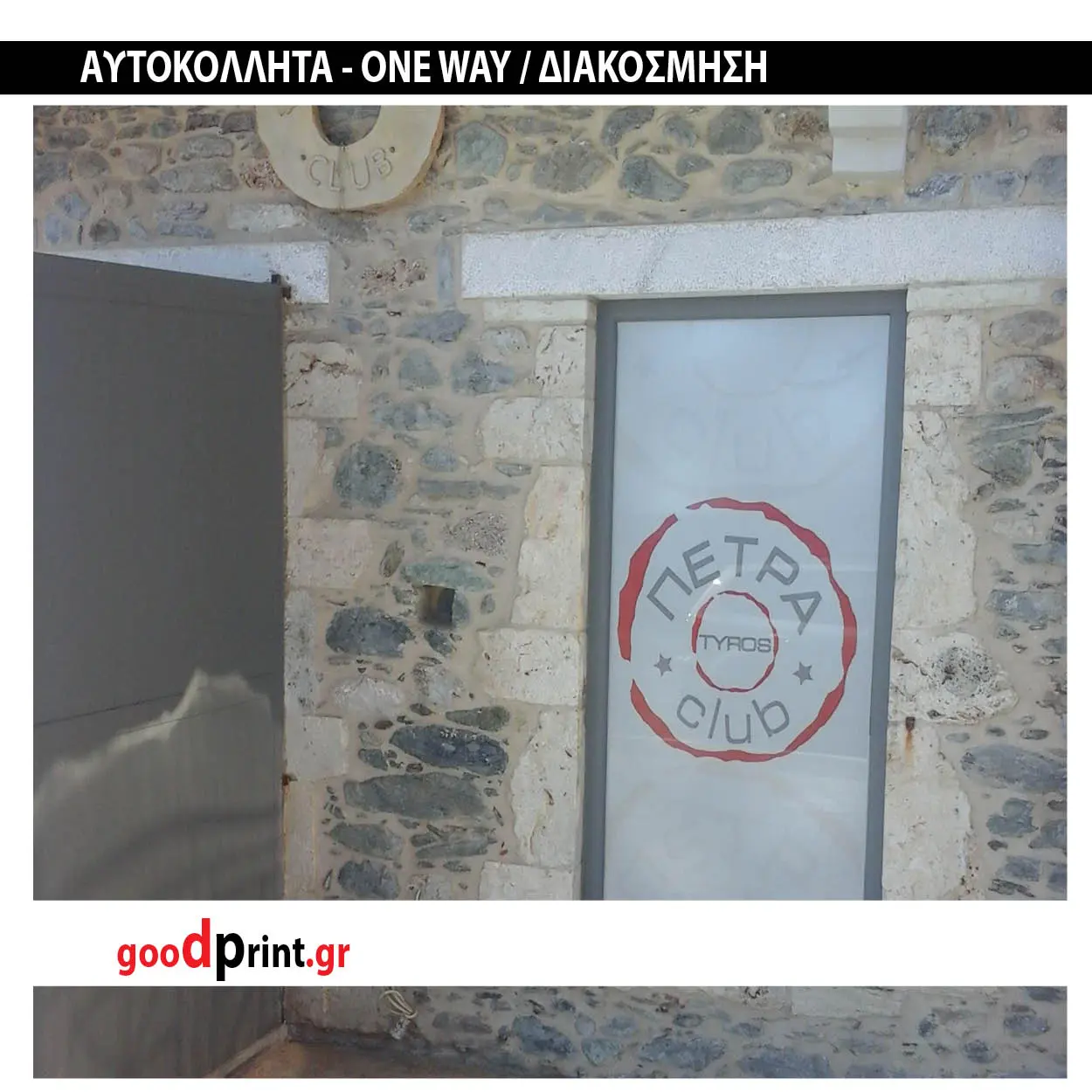 Αυτοκόλλητο ONE WAY (τρυπητό) για επικόλληση σε τζάμια ή βιτρίνες.