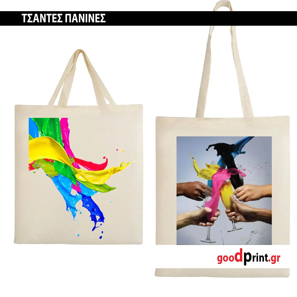 - Τσάντα αγοράς τύπου “οικολογική” με κοντά – μακριά χερούλια.